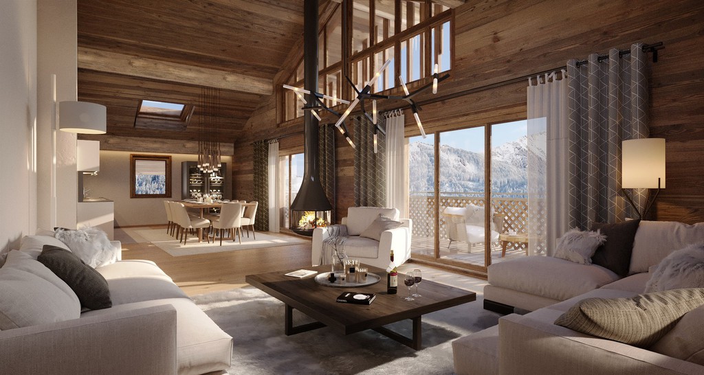 Dans une copropriété de standing, ces trois chalets de haut standing regroupent 22 logements du T2 coin montagne au T5 duplex orienté plein sud et offrant une large